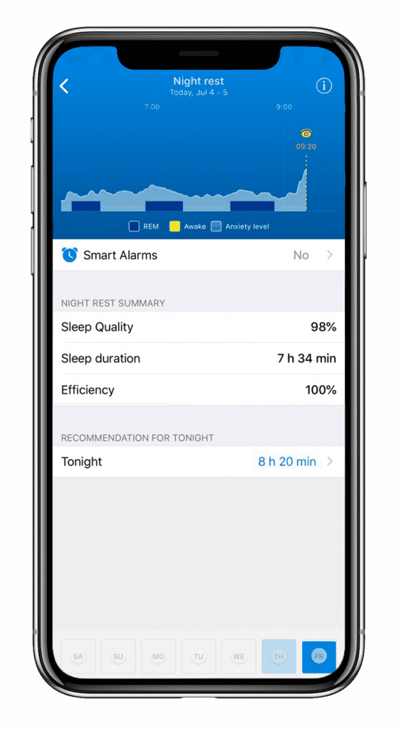 Every night, HEALBE GoBe monitors your body’s parameters to provide a full data report of your sleep phases, as well as the duration of each one. Within the app, you’ll see a timescale with your REM and non-REM sleep cycles mapped out. With this information, you can determine if you are waking up at the right time to feel well-rested.